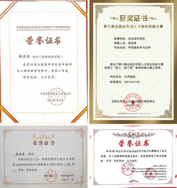 第四届全国高等学校青年教师电子技术基础、电子线路课程授课竞赛国家级二等奖获得者;