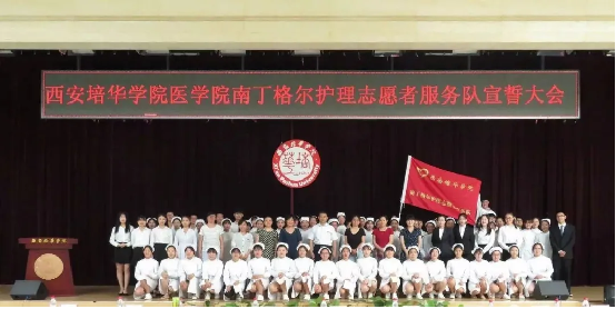 就这样,在化前珍教授的带领下,经过精心筹备,2017年6月21日,西安培华学院医学院南丁格尔护理志愿者服务队正式成立,化前珍教授对学生们说:“记住,护理不仅是技术,更是艺术;志愿服务不仅是付出,更是成长。”