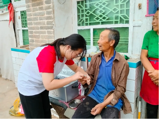 “服务队的时光重塑了我的职业认知。在榆林子洲县,我们连续五天为固执的赵爷爷测血糖;在汉阴县,让张阿姨重新举起手臂......这些经历让我明白,真正的医者仁心,是要俯下身去,倾听老百姓的声音。”就职于汉中市三二〇医院的毕业生郭丽讲到。