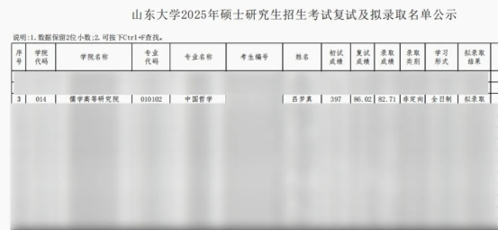 山东大学2025年硕士研究生拟录取名单公示