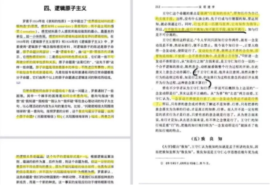 跨学科考研的学生,通常遇到的第一个挑战就是构建新学科的知识体系,但在吕梦真的身上似乎并不是什么难事,这都得益于她在备考期间搭建起的读书笔记框架。在阅读哲学书籍的过程中,她累计完成了23万字的读书笔记,并用“三色批注法”来标注知识点。这些批注和延伸的思考成为她构建哲学知识体系的“秘密武器”。