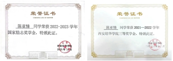 正是这种对待专业一丝不苟的态度,让她在大学四年几乎包揽了学校各项奖学金,国家级奖学金、国家励志奖学金、英语六级奖学金、培华三等奖学金等累计荣获近两万元奖励。“学校的激励是我不断追求理想目标的底气和动力。”