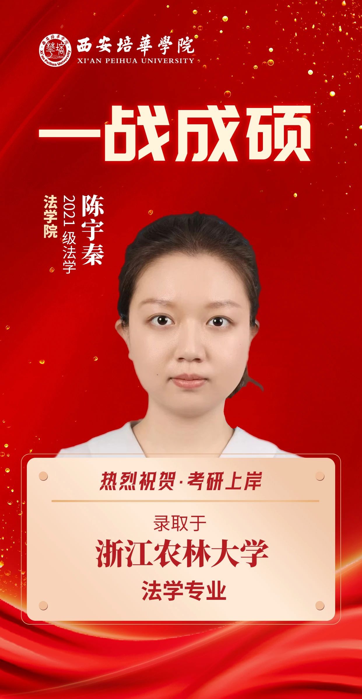 山高有顶,海阔有岸,考研之路,终见曙光。日夜耕耘化作录取捷报,朝暮拼搏换来人生新篇章,这是奋斗的回响、是坚持的勋章,每一缕芬芳都浸透着拼搏的汗水,回首过去一年,培华校园的晨昏四季,皆是他们逐梦的身影。今天,让我们聚焦2025届考研学子,认识这13位奋发向上的培华青年。