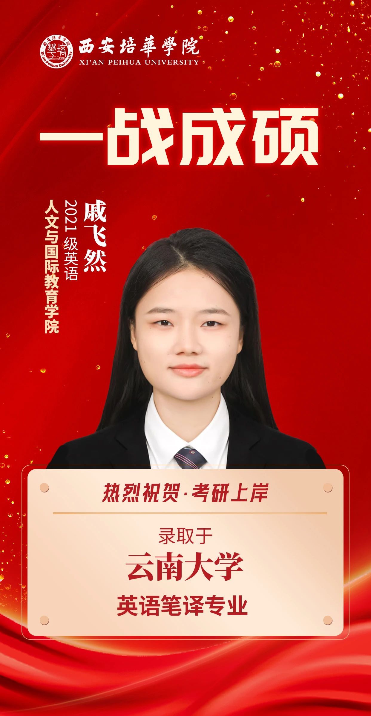——2021级英语 戚飞然考入云南大学