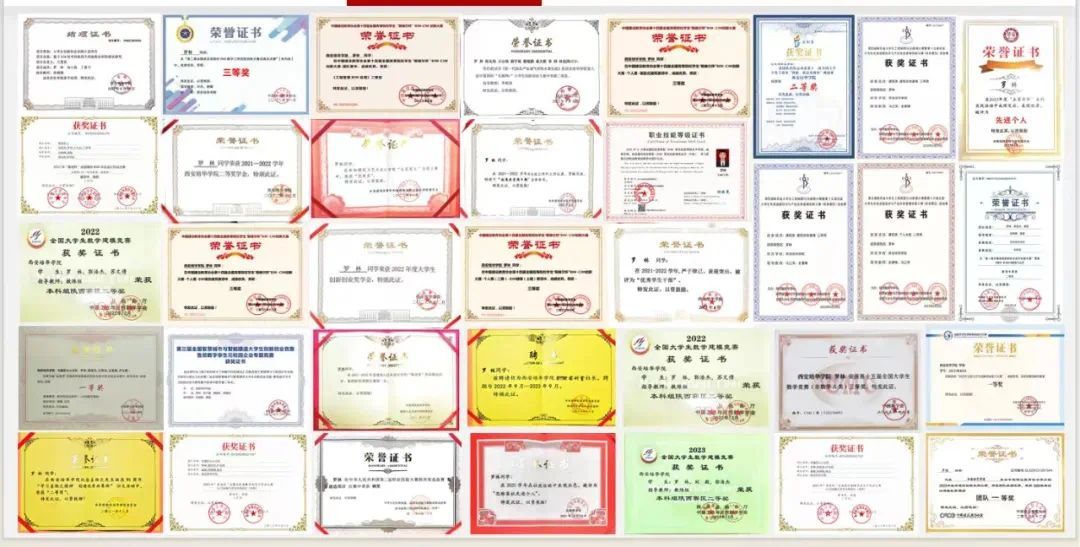 罗林与丁恩习在本科期间的部分获奖证书