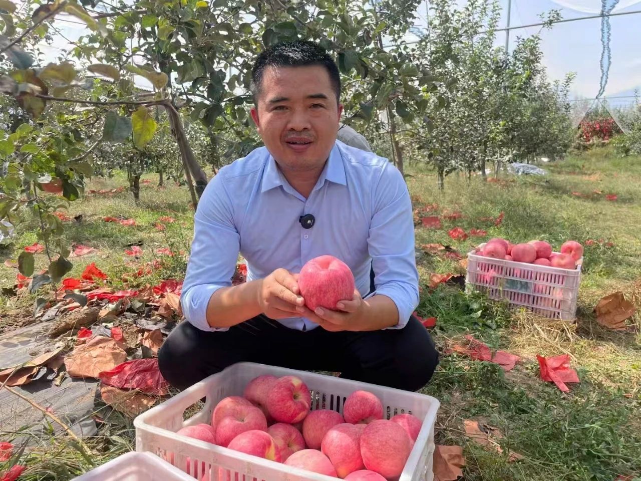 针对家乡老果园的顽疾——土壤板结、病害肆虐、果品质量下降等问题,他多方奔走协调,在科技与农业间牵线搭桥。他先后邀请苹果栽培、微生物等领域知名专家,深入宜君县田间地头调研指导,给农户传授先进的苹果种植管理技术,给村上引进秦脆、瑞雪等多个优质苹果新品种,对皇后村及周边村的500多亩果园进行品种改良。