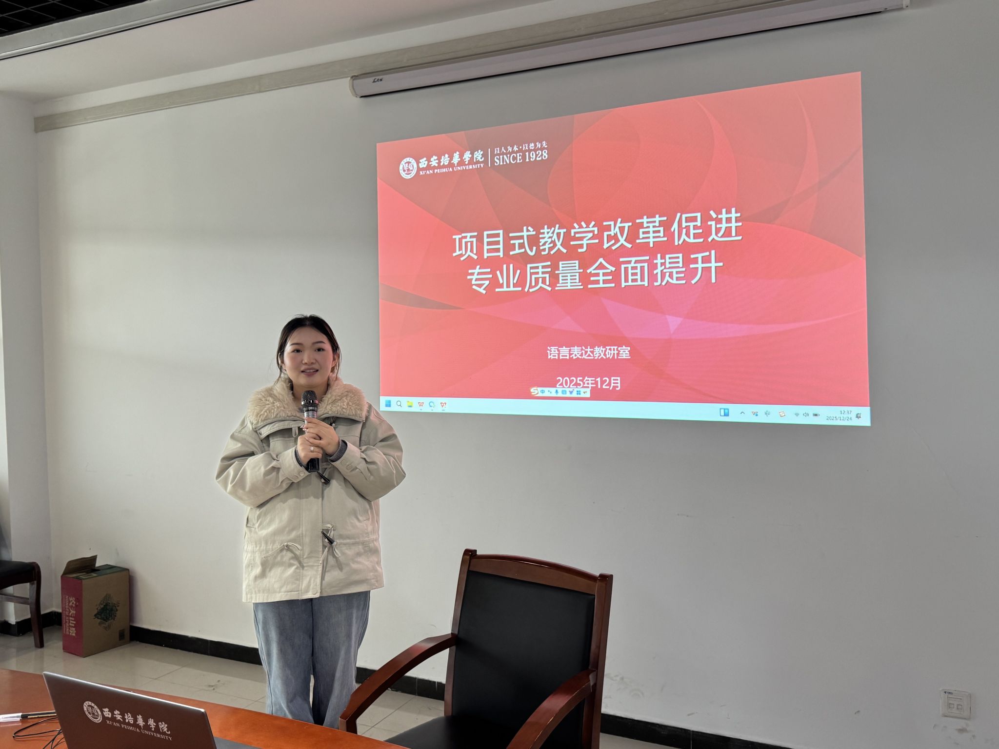 为积极回应新时代传媒行业对高素质口语传播人才的需求,深入推进教学改革与创新,2025年12月23日,我校播音与主持艺术专业语言表达教研室在汇知楼第四会议室成功召开“项目式教学改革促进专业质量全面提升”主题研讨会。本次会议由专业教师张笑影主持,教研室全体教师参与,围绕项目式教学法的理念、设计与实施路径进行了深入研讨,旨在以实践教学改革为抓手,全面驱动专业人才培养质量再上新台阶。