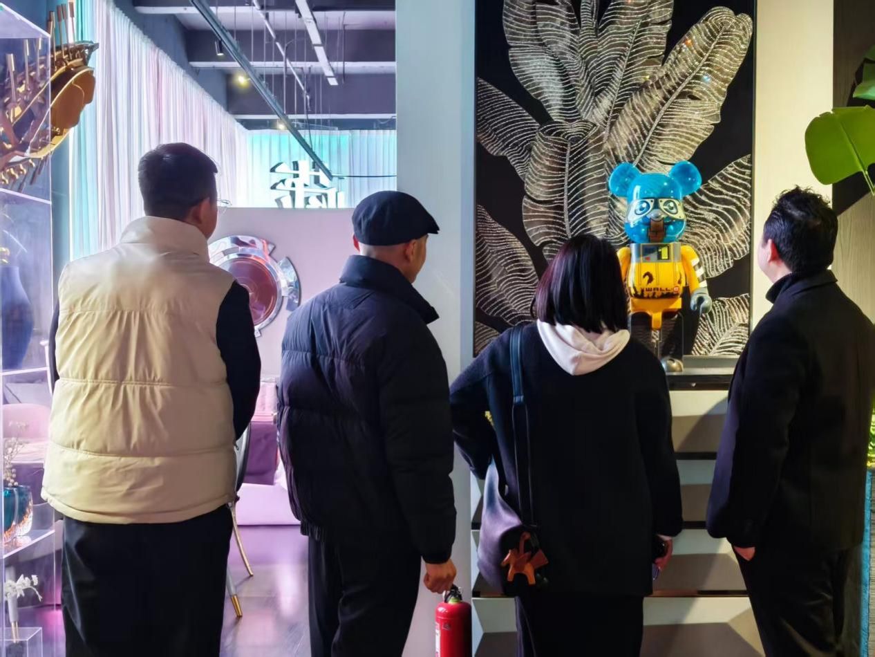 走访期间,教师团队在藏库艺术家居负责人陪同下,先后参观企业产品展厅、设计研发中心、软装实践工坊,详细了解企业发展定位、主营业务、设计理念与生产流程。藏库艺术家居深耕艺术家居设计、文创软装、传统工艺生活化应用领域,将木雕、漆艺、陶艺、纤维艺术等传统工艺美术与现代家居美学深度融合,与我校工艺美术专业的人才培养方向、课程体系高度契合,为学生提供了贴合专业的实践场景与优质就业岗位。