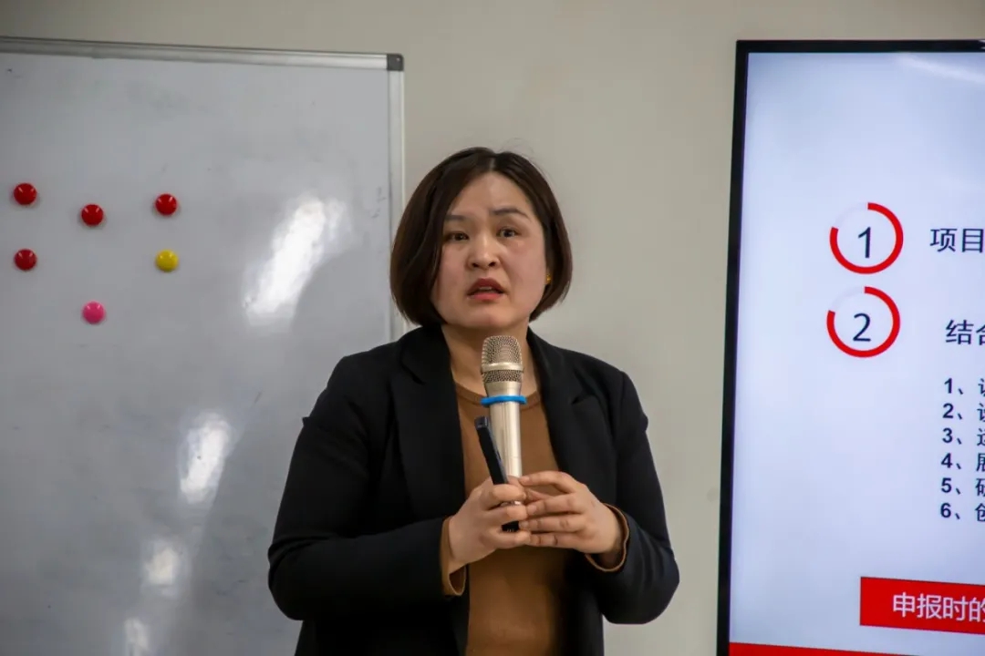张老师从大创项目是什么、大创项目哪里来、大创项目如何做、大创项目怎么办四个维度全面阐释了大创项目的深刻内涵以及实施路径,为老师和学生们做了详细解读。