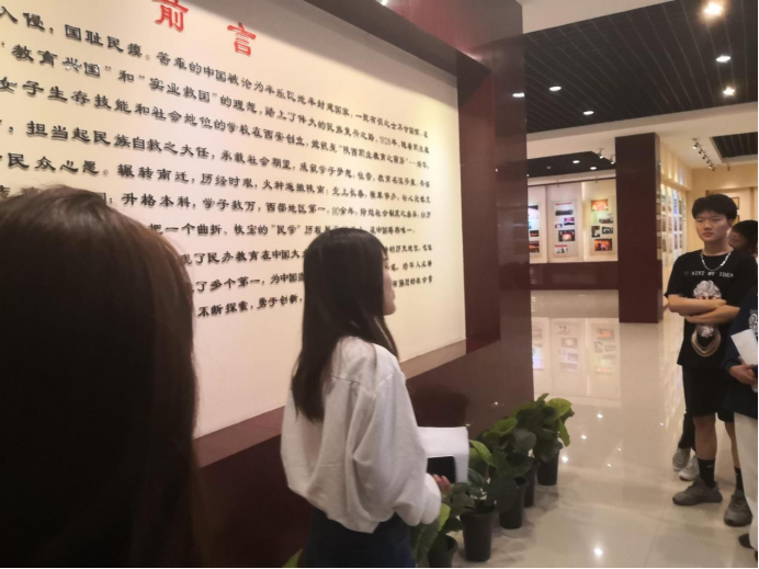 本次联合实践以各班级自行组合的小组为工作单位进行,分批进入校史馆内聆听讲解员进行校史讲解。担任本次讲解工作的同学分别有吕泳瑶,孟盼盼,马嘉璐。她们从一张张老照片,一个个感人故事,一栋栋历史建筑当中来讲述培华艰苦卓越的办学历程,在她们生动详尽的讲解中,同学们了解了西安培华学院的百年职业教育起源于辛亥革命和1919年爆发的“五四”爱国运动,一批倡导新文化的青年知识分子,在西方工业革命和俄国“十月革命”的影响下,抱着“教育兴国”、“实业救国”的理想,不断投身新民主主义运动。1917年,黄炎培先生在上海创办中华职业教育社,从此,“使无业者有业,有业者乐业”的职业教育思想在中国大地迅速传播开来。这生动的讲解让同学们更加深入低了解了西安培华学院近百年的发展变迁,感受到数代培华人拼搏奋进的精神。
