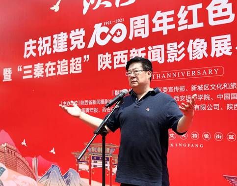 中共新城区委常委、宣传部部长杨丽萍致辞中对在场的各界新闻摄影人士及嘉宾表示热烈的欢迎。她讲到,中国共产党经历100年风雨征程、峥嵘岁月离不开共产党人的奋斗,中国共产党带领广大劳动人民奋勇前进、艰苦奋斗,深刻体现了中国共产党人的使命和担当。她强调,本次庆祝建党100周年主题展演活动记录了三秦大地百年来,人民群众听党话、跟党走,走向幸福生活的历史印记,也是为建党百年献上的最好礼物。