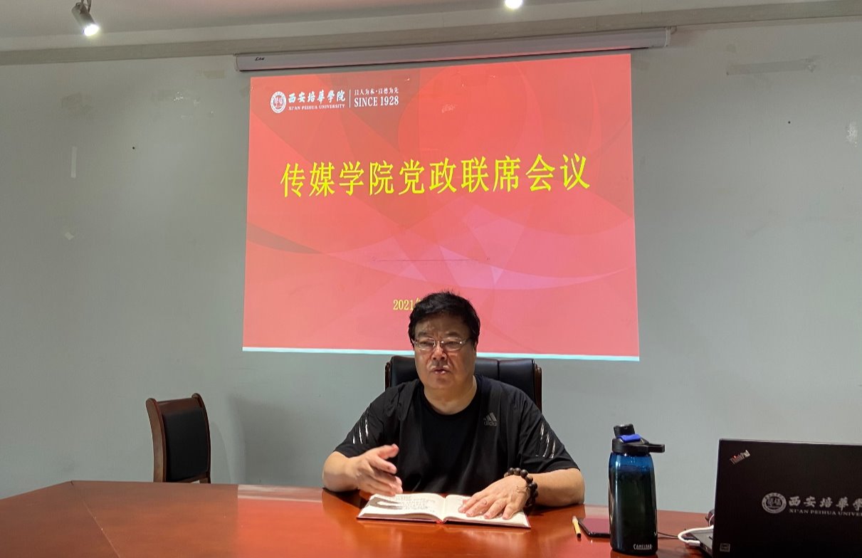 7月19日下午,传媒学院在第三会议室召开党政联席会议,安排部署近期本科审核评估、资产清查等重点工作,学院领导班子、各专业带头人、系主任、副主任、实验中心主任及教科研干事参加会议,院党委书记、行政副院长江俊瑞主持会议。