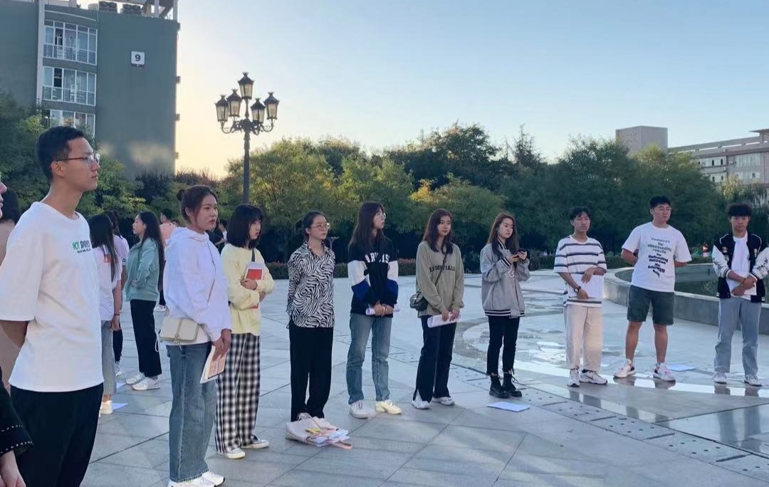 用心吐字用爱归音,唤醒培华学院第一缕阳光的是播音与主持艺术专业大一新生的朗朗之声。9月13号,传媒学院播音与主持艺术专业2021级的萌新们,在系主任尚勇老师和系副主任巨梦老师的带领下,早早便抵达了音乐喷泉广场,开始了他们的大学“第一课”——练声。