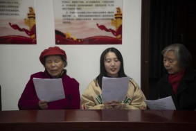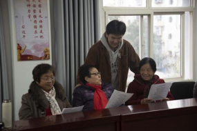 为了此次活动能够顺利进行,志愿者们提前筛选稿件,希望能够选择一份便于老人理解,朗朗上口的诗歌,最后选定方志敏的《可爱的中国》。志愿者们利用课余时间集中在一起多次排练,希望呈现给老人们一个别样精彩的节目。