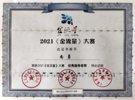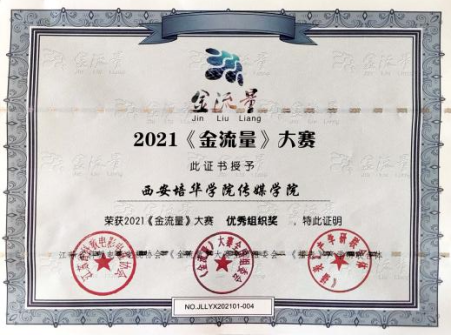 10月15-17日,2021《金流量》大会暨新媒体主持人大赛在浙江杭州举行,经过为期三天的全国总决赛,传媒学院荣获最佳组织奖,播音与主持艺术专业系主任尚勇、专业教师任秋璇获得优秀指导教师奖。同时,传媒学院播音与主持艺术专业2020级夏瑜娸同学进入大赛全国十二强,并在最后的总决赛中获得一等奖的好成绩。此外,播音与主持艺术专业学生刘健、郑吉乐、赵锐、高量浩荣获全国三等奖,兰鹏等七位同学荣获全国四等奖。