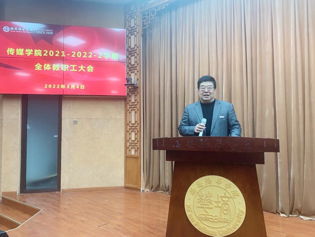 3月4日下午,传媒学院召开2021-2022-2学期全体教职工大会,学院领导班子及全体教职工参加会议,会议由传媒学院常务副院长王西娅主持。