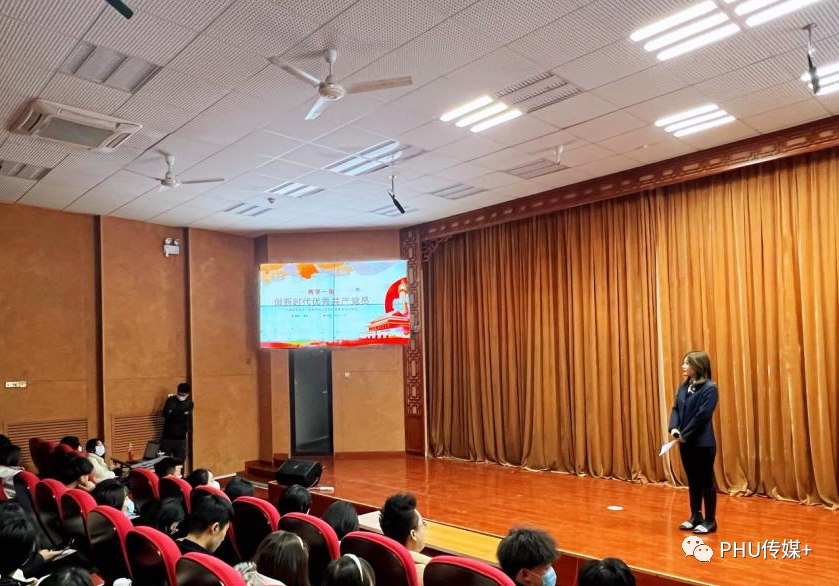 11月9日晚,传媒学院党委在汇知楼国学大讲堂为本期积极分子、发展对象开展了一场题为“做新时代优秀共产党员”的主题党课培训,传媒学院学生第四党支部书记胡玉为大家授课。