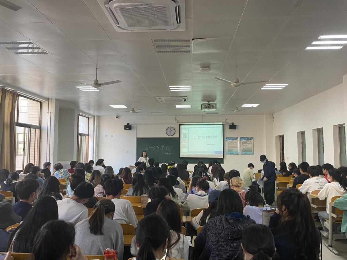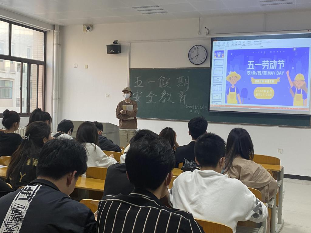 辅导员冯靖敏老师在班会讲到:在“五一”劳动节到来之际,为使同学们度过一个愉快、平安、健康、充实的假期,大家尽量减少外出,不聚集、不扎堆做好疫情防控工作。学生们一定加强疫情防控意识,深刻认识到当前疫情防控形势的严峻性和复杂性,积极配合学校疫情防控要求,学生离校期间必须全程佩戴好口罩,保持安全距离,不聚集,尽量避免前往人员密集区域。其次就防溺水、交通安全、食品安全和防火、防盗、防安全事故、防电信诈骗,等方面内容对学生进行安全教育,提高学生安全意识和安全防范能力。最后,要求班级内积极开展学生离校、留校的登记工作,严格落实学生请假和按时返校制度,以便及时掌握学生的假期动态,做好疫情防控工作。