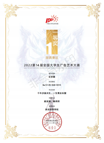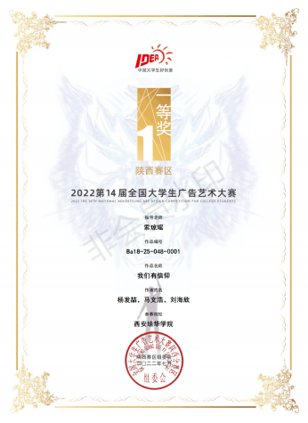 我院在第十四届大学生广告艺术大赛陕西赛区中取得优异成绩,在报送的105项作品中荣获省级奖30项,其中一等奖6项,二等奖12项,三等奖10项,优秀奖2项。