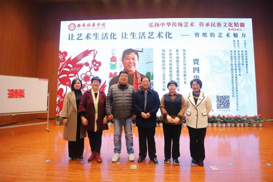 11月16下午由西安培华学院与陕西省新闻摄影学会联合举办的“弘扬中华传统艺术 传承民族文化精髓系列活动之三剪纸的艺术魅力大型理实一体讲座在维之图书馆三楼学术报告厅成功举办。该讲座是由西安培华学院传媒学院承办,西安培华学院全媒体课程思政教学研究中心和西安培华学院全媒体发展创新研究中心联合协办,由著名剪纸艺术家贾四贵主讲《让艺术生活化 生活艺术化——谈中国剪纸艺术的繁荣发展》,陕西省新闻摄影学会副会长西安市人大代表陕西省教学名师、西安培华学院传媒学院常务副院长王西娅教授主持。