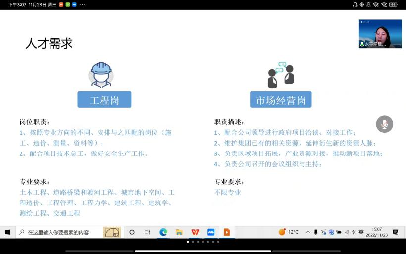 负责人曹禄洋向同学们展开说明主要招聘的岗位以及岗位的基本要求与内容,让学生自由选择。同学们针对自己感兴趣的岗位提出疑问并与公司进行线上交流沟通,主动了解用人单位的基本情况并表达自己的求职意向,公司对毕业生的就业疑惑进行了详细的解答,并留下联系方式让有意向学生进行进一步的咨询。