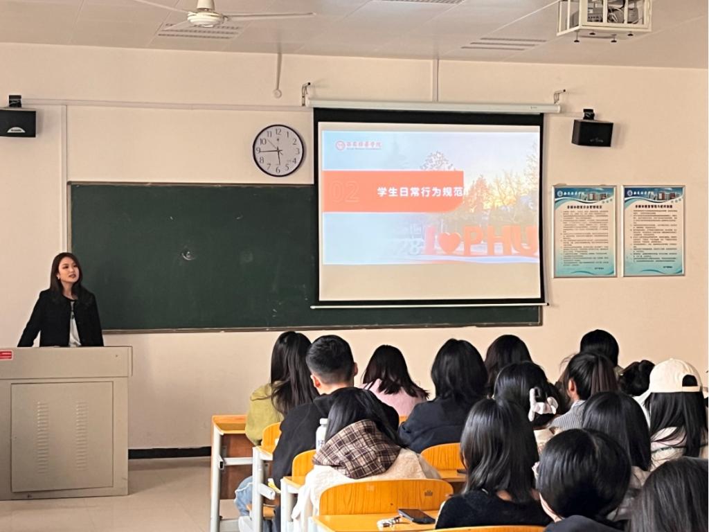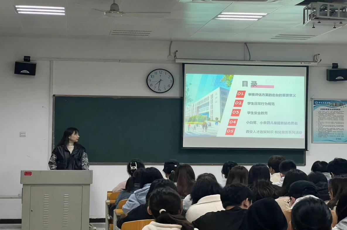 结合省级平安校园评估认定复审要求,辅导员们也对学生们进行普法宣传及校纪校规教育,结合学生群体中发生的典型案例开展讲解,使学生们明白了为创建“平安校园”,学生们应当贯彻落实评估办发布的《审核评估应知应会(学生版)》,展示大学生文明行为教育成效及精神状态。