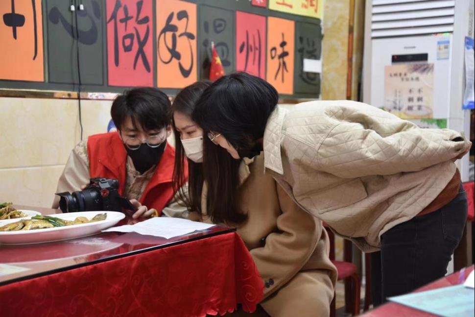 饭馆小小几平米的地方,却包含着人间浓浓烟火气,暖色调装修风格成为忙碌生活的一方温暖避风港。拍摄过程中川渝店员积极配合宣传片拍摄,以最热情的待客态度展现饭馆风味。志愿者们也十分积极耐心地与保吉巷社区的负责人沟通如何拍摄,使得拍摄活动顺利展开。小小饭馆内志愿者身穿红马甲忙碌穿梭,利用专业技能拍摄菜品及店铺装修,拍摄成果得到店员及社区工作人员的一致好评。