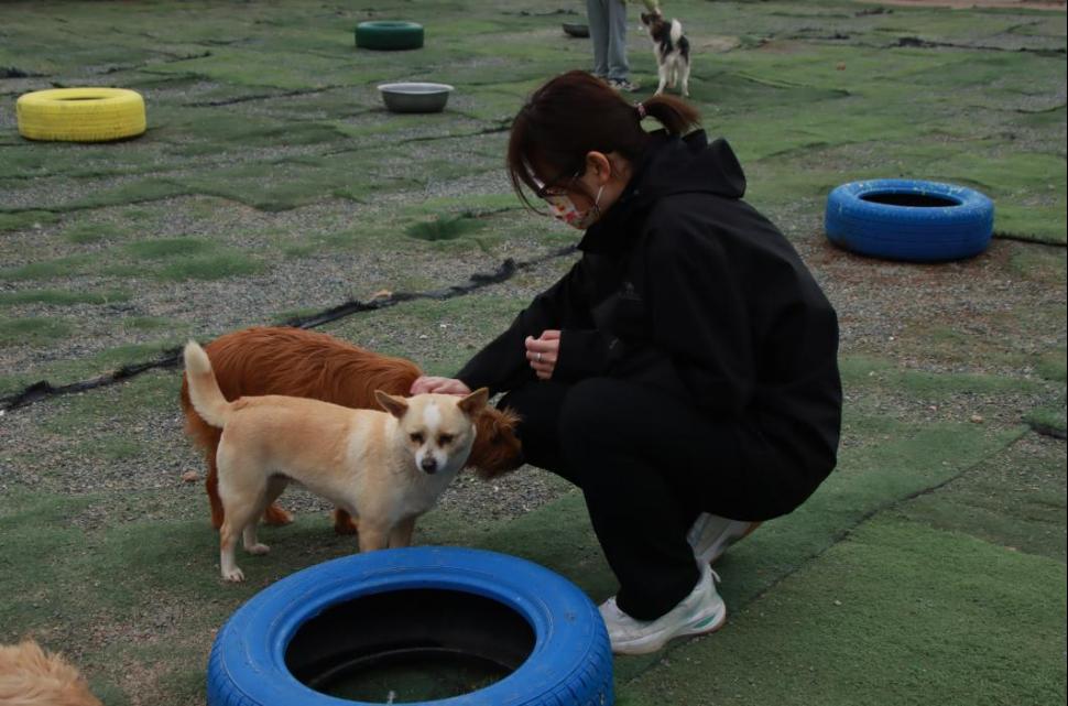 推开基地的大门,沿着铺满鹅卵石和碎石的小路来到流浪动物的家里,大大小小的狗狗在围着志愿者转圈,狗狗们的尾巴一直欢快的摇动,各色瞳孔里满是激动和欢迎。