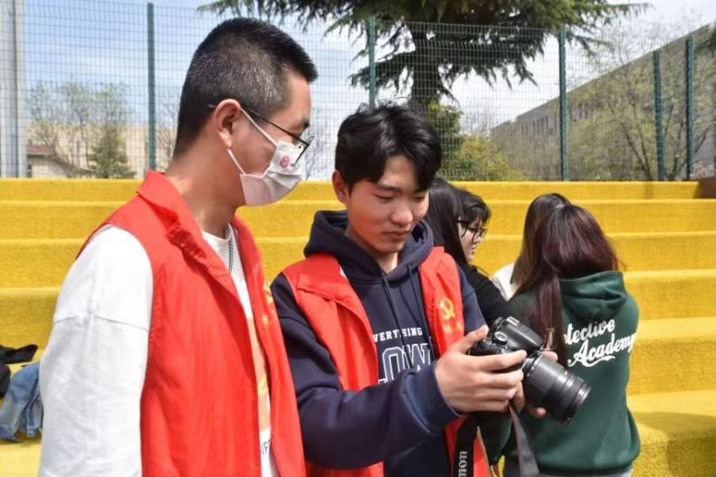 摄影实践课堂开始之前,青年志愿者协会主席团成员马文浩与部长马梦瑶一起提前与大一学弟学妹进行提前学习巩固,大家围成一圈共同了解相机基本知识,学习气氛其乐融融。随后拍摄过程中同学们结合理论小课堂知识,在学校操场上记录下学校的风景,相机中的一张张色彩斑斓的相片不仅起到了记录生活的作用,更记录下了大一新生在摄影摄像技术方面的努力与进步。
