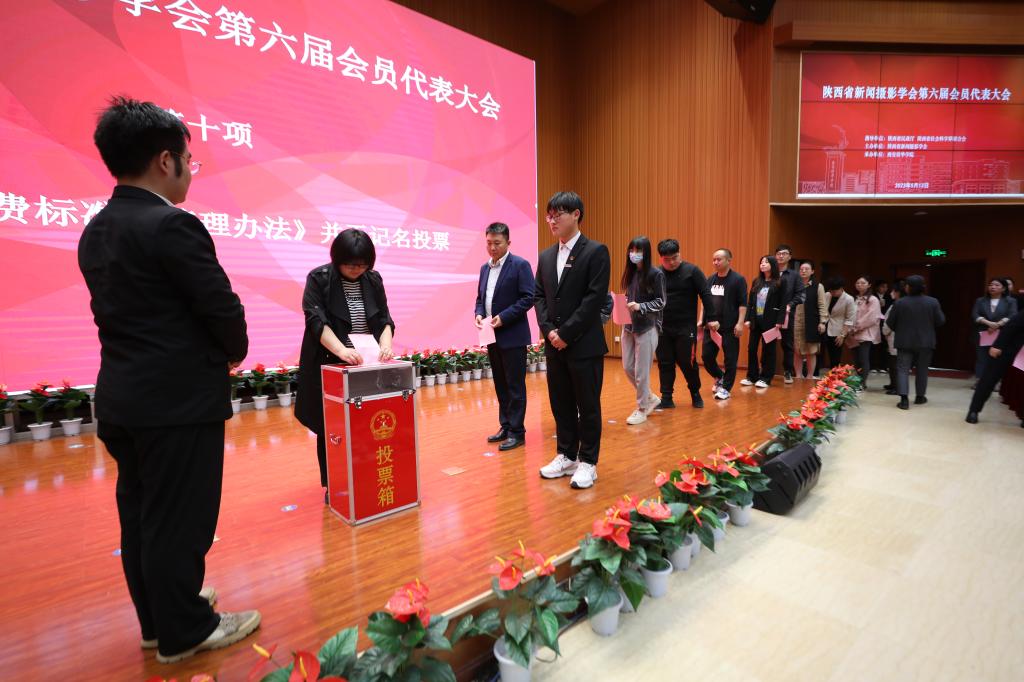 大会对《陕西省新闻摄影学会第五届理事会工作报告》《陕西省新闻摄影学会第六届会员代表大会选举办法》《财务审计报告》《陕西省新闻摄影学会学会章程》《陕西省新闻摄影学会会费标准及管理办法》等文件进行审议、表决和无记名投票。
