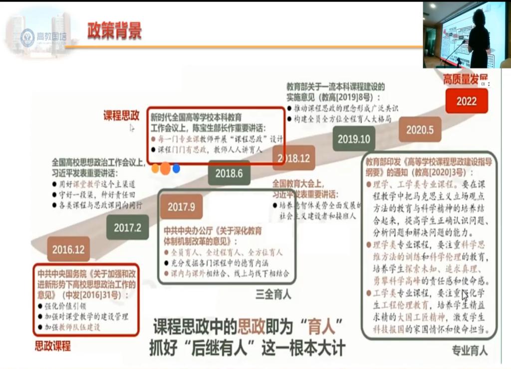 西北农林科技大学寇小希老师主要讲述关于OBE理念下课程思政的顶层设计,通过自己课堂上的具体案例,为高校教师们讲解如何以学生为中心设计课程目标,以便于学生快速吸收课堂知识、能力、价值等内容。