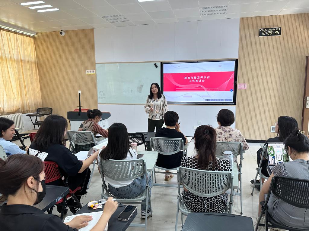传媒学院新闻传播系为了确保新学期工作有序开展,加强系内教职员工的沟通与合作,新闻传播系于2023年8月30日在汇知楼6435举行了开学初工作推进会。会议围绕新学期的工作安排和推进进行了深入的讨论,为系内师生营造一个更加积极向上的学习与研究氛围。