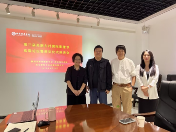 9月22日,传媒学院在汇知楼二楼会议室召开了第三届美丽乡村国际影像节高端论坛暨颁布奖仪式座谈会,陕西省新闻摄影学会会员、青年导演陈非,西安缪斯广告文化传播有限公司总经理、创始人葛君,陕西省新闻摄影学会名誉会长、传媒学院院长杜耀峰,陕西省新闻摄影学会常务副会长、传媒学院常务副院长王西娅,传媒学院党委书记兼行政副院长江俊瑞出席了本次座谈会。