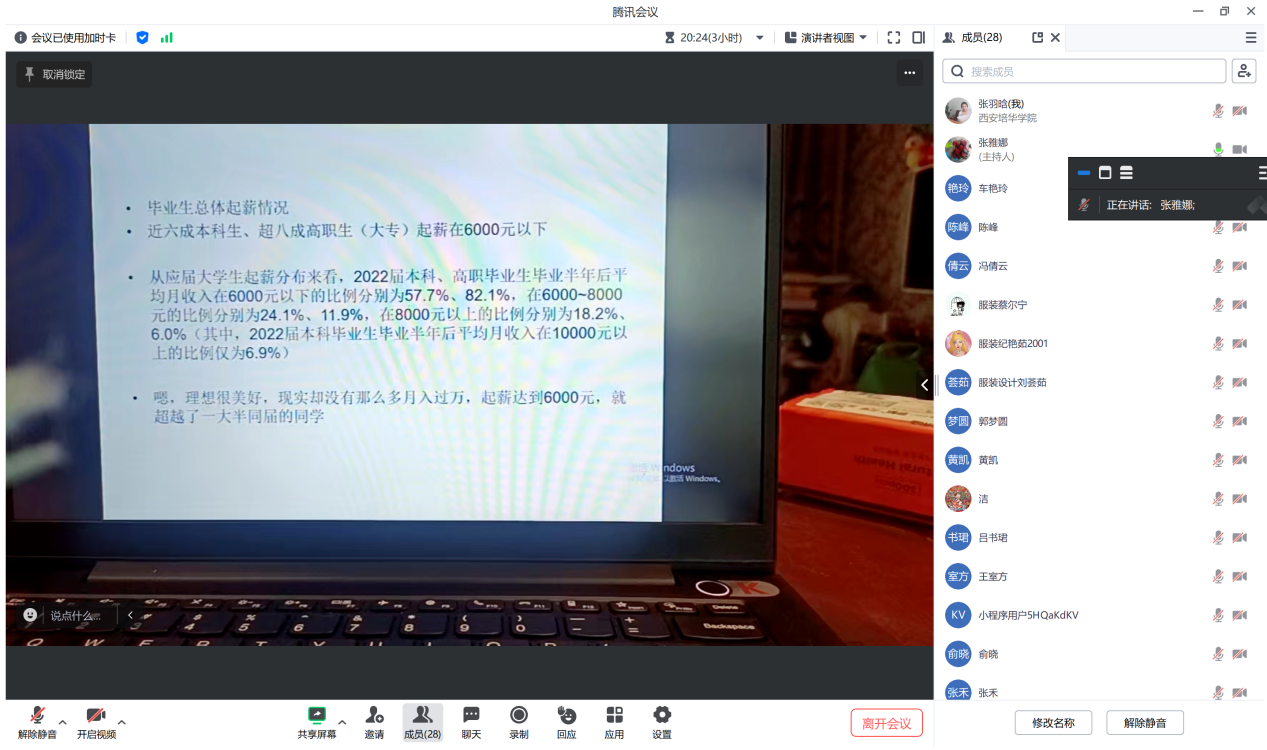 为帮助服装与服饰设计2023届毕业班学生树立职业生涯规划意识,明确未来奋斗目标,提升大四学年学习动力,服装与服饰设计专业邀请张雅娜副教授于2023年9月20日对学生开展职业生涯规划线上讲座。