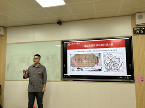 陈连龙老师围绕课程教学培育科研力量、通过专业赛事强化科研能力、通过科研反哺教学以及科研建议四个方面展开讲座,他讲到,青年教师要以跨学科为抓手,通过将历史教学资源、系列纪录片与科研理论相融合,将课程案例转化为课程思政教学资源,将专业赛事与实践课程融合,将学生相关作品整理成课程思政案例库,将科研成果转化为教学资源等方式,不断总结、凝炼累积,形成青年教师撰写论文及申报项目的基础资源。在课堂教学中,青年教师要更新教学内容,改进教学方法,提高教学效果,满足教师与学生学术能力提升、职业发展等多向需求。