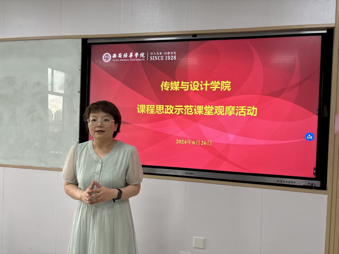 为进一步落实立德树人的根本任务,促进课程思政建设经验交流与推广,充分发挥课程思政育人功能,6月26日下午,传媒与设计学院在博远楼智慧教室2203举行了课程思政示范课堂观摩活动,并在此基础上积极开展课程思政示范课线上课程申报工作。经各系推荐、学院优选,共有五位课程思政示范课负责人在本次观摩活动中进行课堂教学示范,活动由学院督导组组长、新闻学专业带头人梁小凤主持,各专业40余位教师现场进行了观摩。