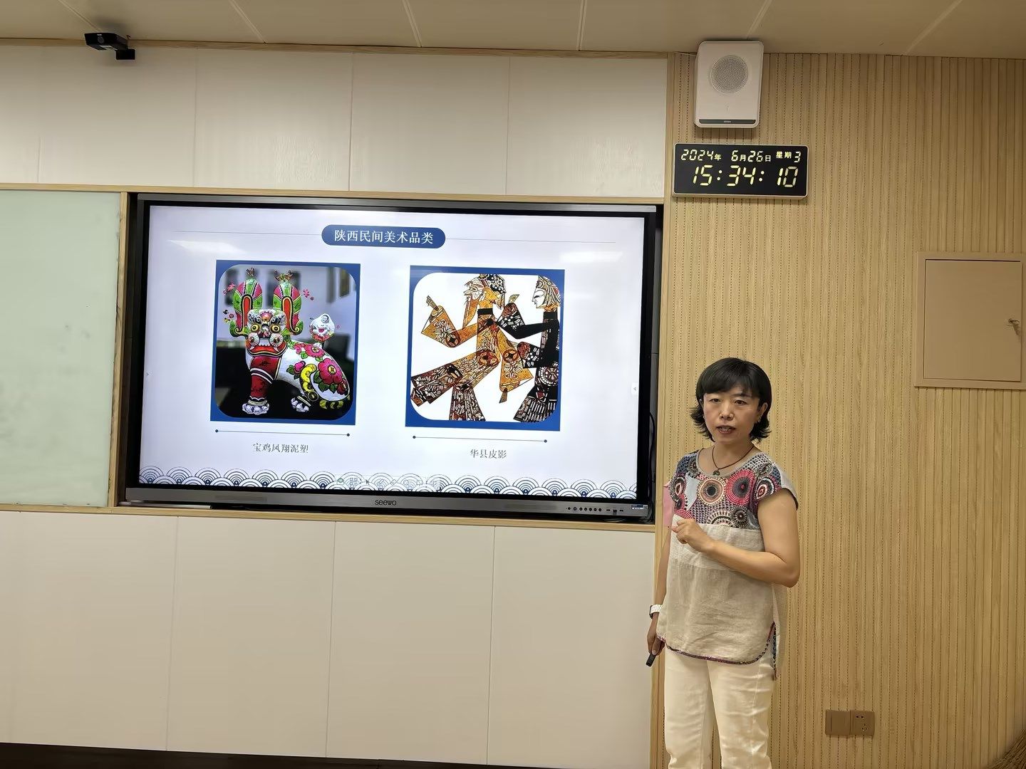 视觉传达设计专业教师杨柳围绕课程《民间美术》进行了教学示范。杨老师将课程知识要点和其所蕴含思政元素一一对应并有效融合,通过民间美术的形式、类型、内容,一方面使学生深刻了解国家的历史变迁,产生情感上的认同、回归,另一方面提升了学生的人文素养、构建文化认同、引导学生树立正确价值观,体会“为人民而生,因人民而兴”的为人民服务的理念。