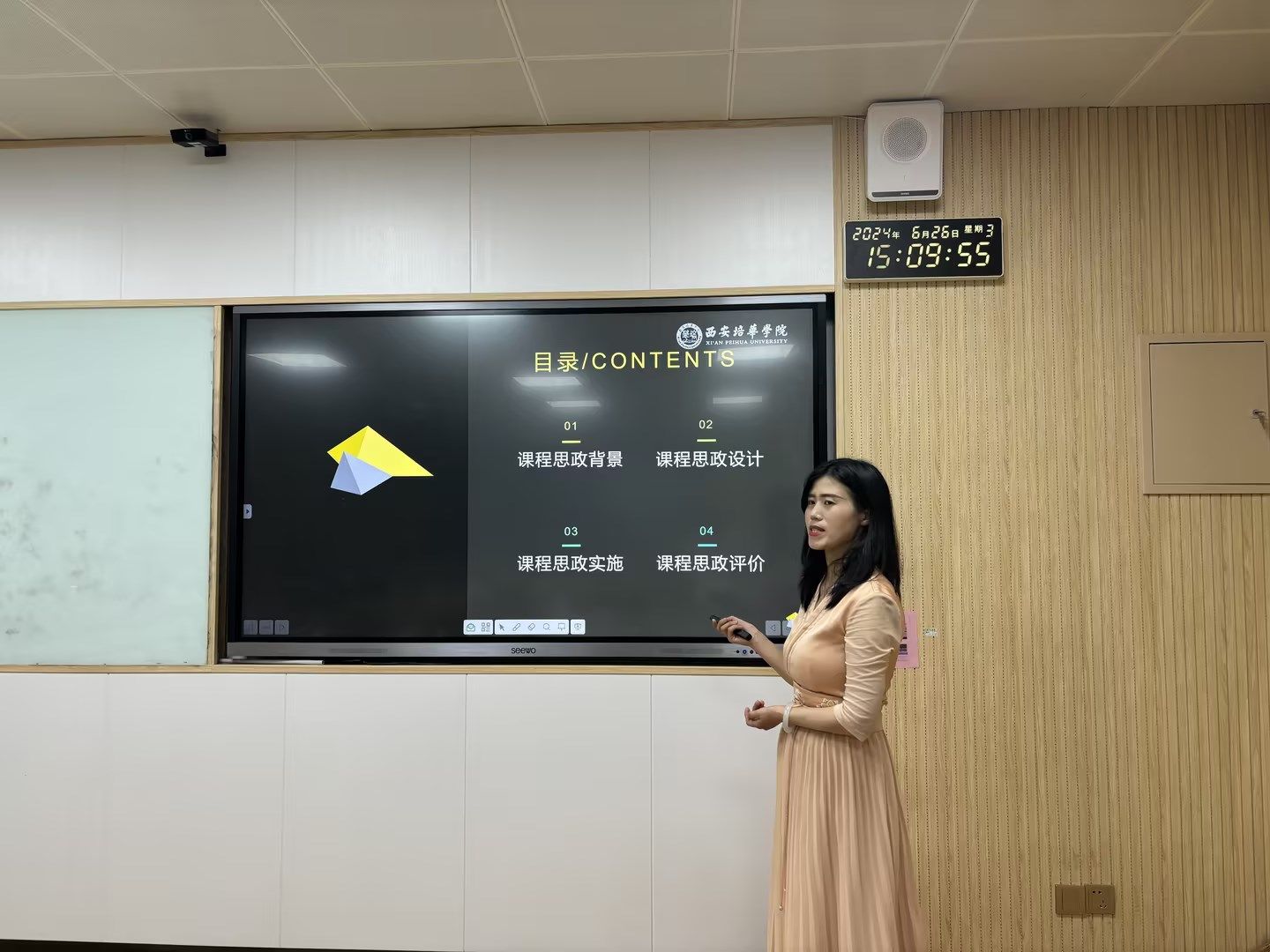 广播电视编导专业教师晋珊珊对课程《纪录片创作》现场进行了教学展示。晋老师围绕家国情怀、主题表达、文化认同、创新精神、职业理想、陕西本土文化五个方面详细说明了课程思政的目标和内容,通过以学生为中心的参与式教学模型图展示了课程的整体设计思路,她强调,授课教师应注重专业知识的拓展和案例累积,能够有效促进课程思政元素和专业知识的融合。
