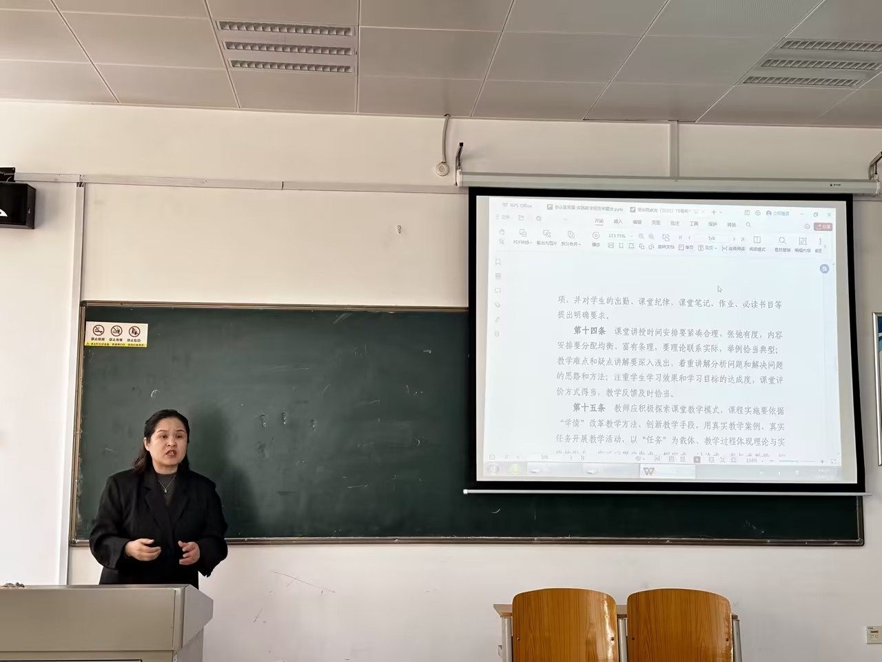 张院长围绕学校相关重点文件,对课堂教学的各项标准规范进行了细致梳理。重点从课堂组织管理、师德师风、教学内容设计、实践教学等方面展开,强调教师作为课堂的第一责任人,要明确知悉教学环节的各项要求准则,严格要求自己,特别是实践教学,作为提升学院整体教学水平的关键环节、培养学生创新精神和实践能力的重要途径,如何有效充实的开展实践教学必须予以高度重视和严格规范。她讲到,各专业要根据学科特点和实践需求,制定具体、明确的实践教学计划和教学大纲,确保实践教学的目标和内容清晰、具体、可操作,教学内容富有条理、紧凑合理,课堂组织张弛有度、分配均衡。