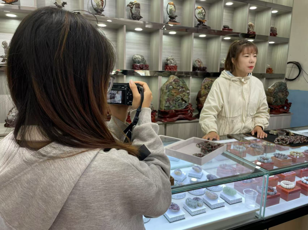在石门镇,学生们在此进行传统玛瑙制作工艺拍摄,通过玛瑙制作人的操作,学生们用镜头书写属于玛瑙制作的工匠精神。