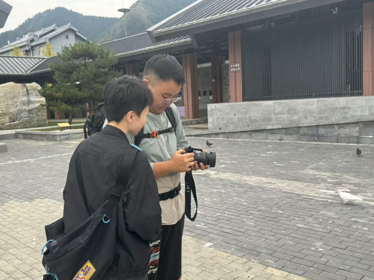 第一天,师门们从学校出发,历时两个小时抵达位于商洛市洛南县的华阳写生基地,在进行校外实践安全教育后前往洛南县仓颉小镇进行拍摄,这里建有中华仓颉汉字文化博览园,是了解国家级非遗“仓颉传说”的绝佳地点。学生们在这里聆听了仓颉造字的古老传说,感受了汉字文化的深厚底蕴和独特魅力,