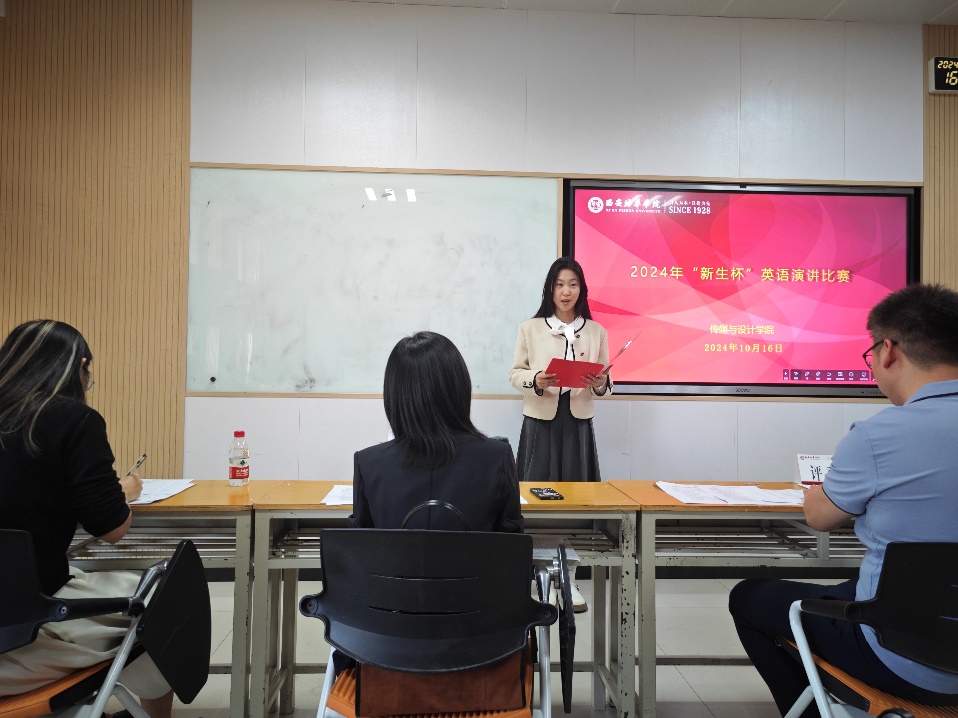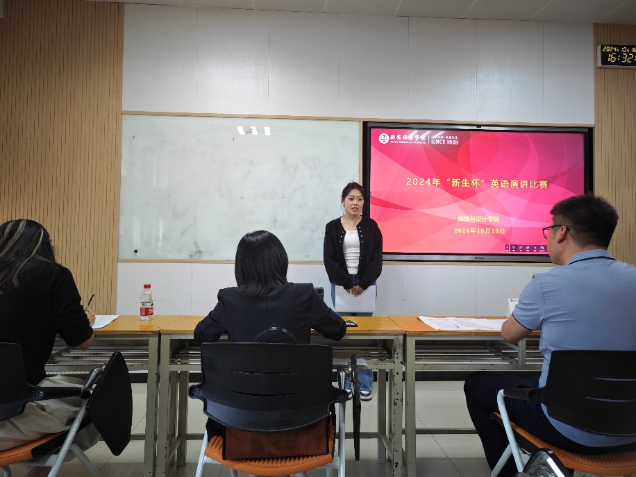 2024年10月16日下午,传媒与设计学院在6423教室隆重举行了2024年度“新生杯”英语演讲比赛。此次比赛旨在激发新生的英语学习热情,提升大学生的英语口语表达能力和逻辑思维能力,同时为同学们提供一个展示自我、挑战自我的平台。