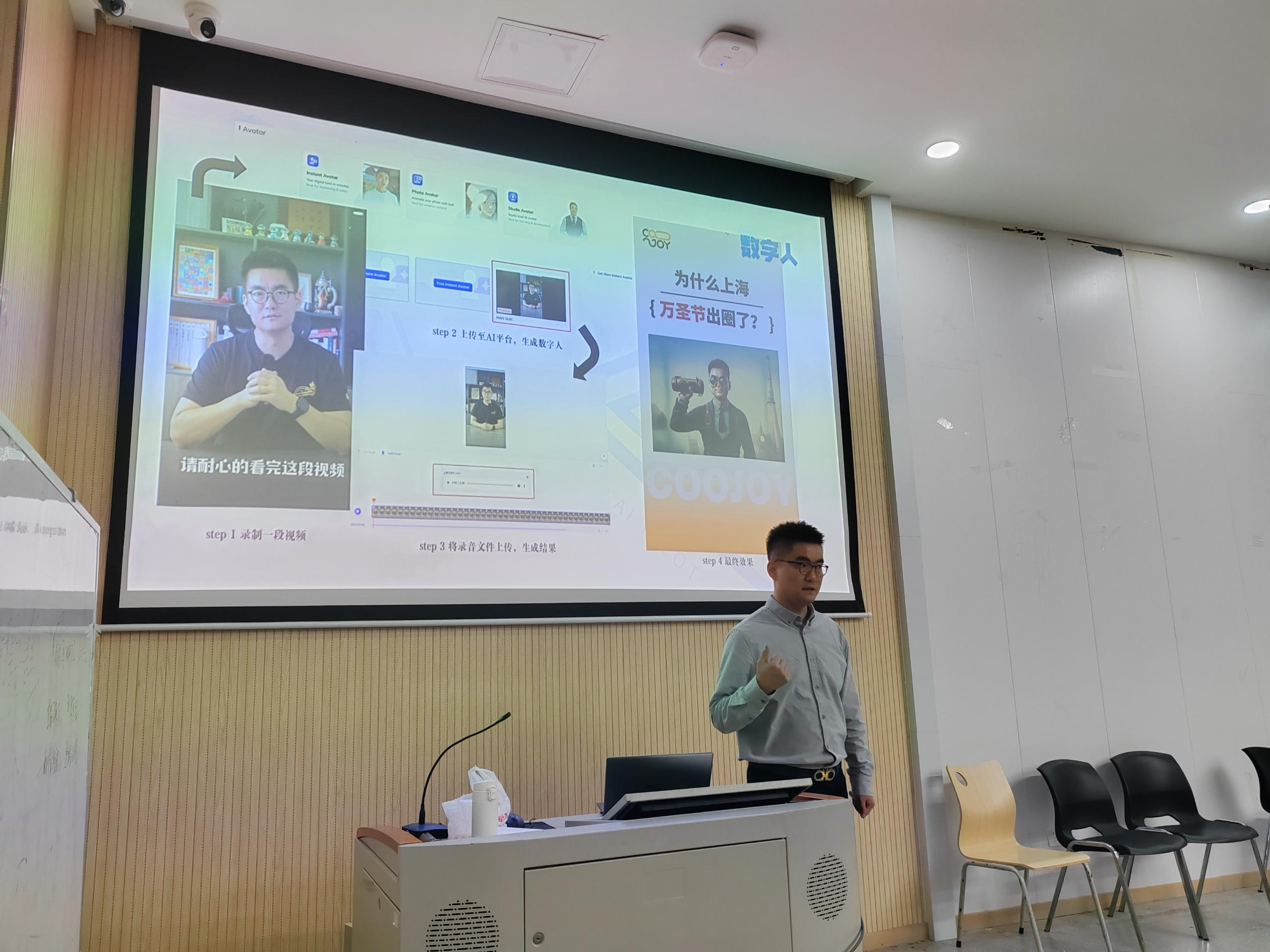 本次讲座围绕AI时代已至、AI的前世今生、AIGC工具盘点、AI时代下的传媒人四个方面进行展开。讲座开场,孙晗总经理通过提问引导学生思考自己与AI的关系,引出讲座的目的。讲座中,孙总通过大量的现实案例说明了AI在内容生产与传播中的应用,给现场的同学们介绍了文生文、文生图片、文生音频、文生视频多款国内外工具,结合公司真实项目案例讲述了传媒人以AI为工具的内容生产流程。