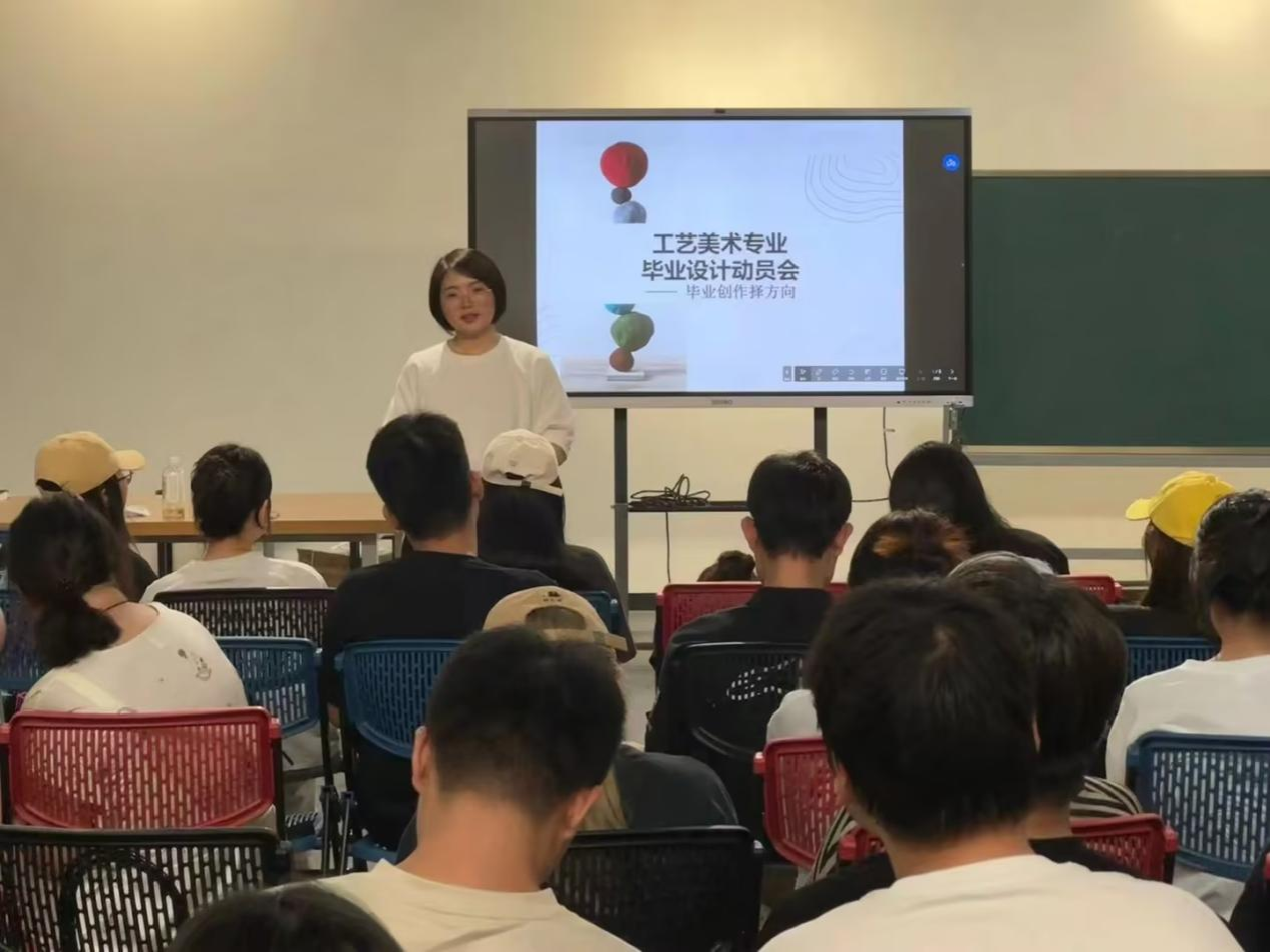 传媒与设计学院工艺美术专业于 2024 年9月23日召开了毕业生毕业设计动员大会。此次大会旨在激发毕业生的创作热情,明确毕业设计的要求和方向,为他们的大学生涯画上圆满的句号,同时开启他们艺术人生的新征程。