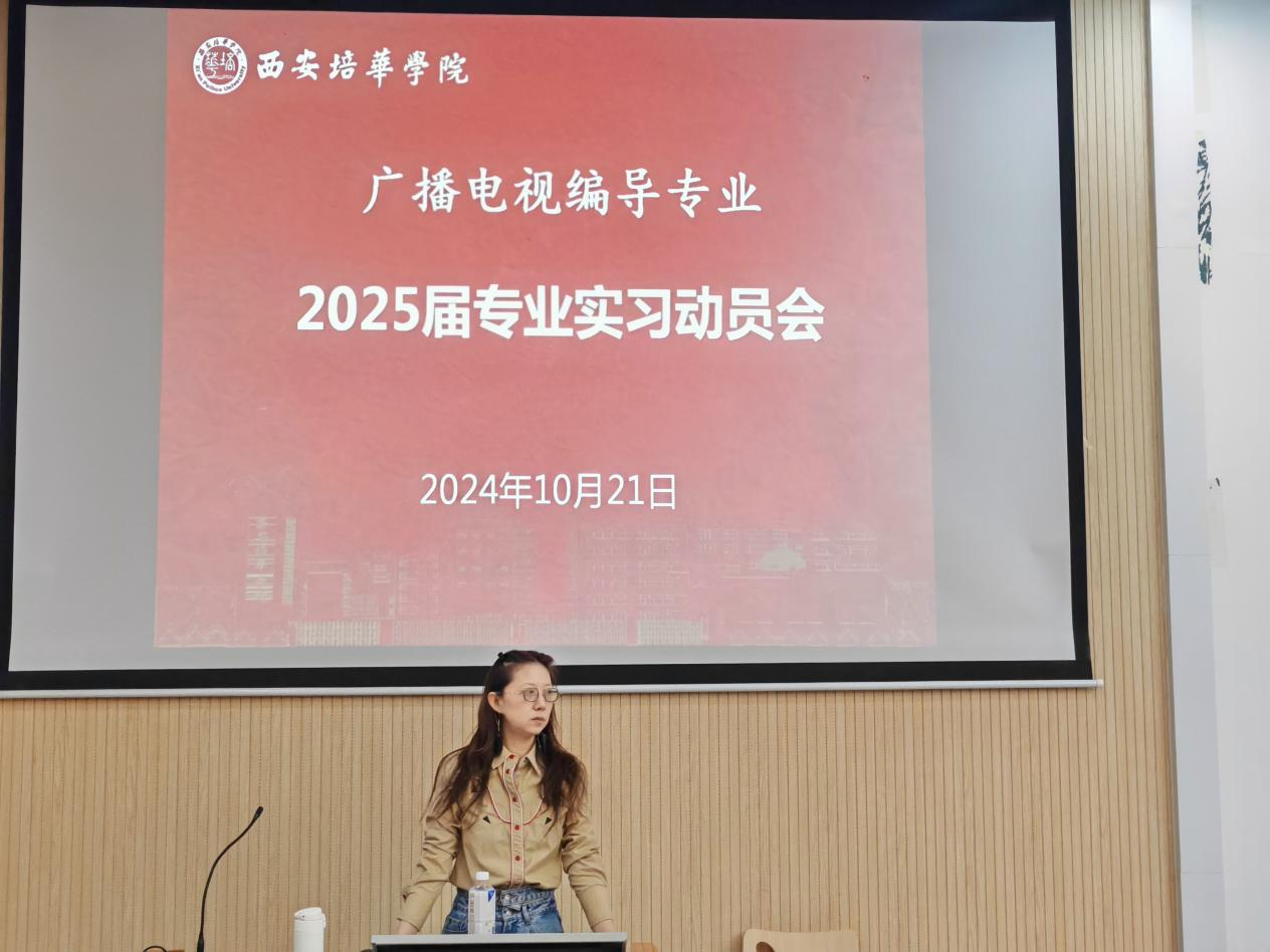 10月21日,2025届广播电视编导专业4个班,共计150余名同学在3507组织召开了“专业实习动员大会”。戏剧影视系副主任邱晓波、广编专业教师晋珊珊、李瑾、雷一鸣共同组织参与。四位老师作为此次《专业实习》课程的任课教师,分别就课程实施方案、校企合作企业介绍、现场提问等具体情况作了讲解与答疑。通过此次动员会,2025届与会学生对于“专业实习”有了更为清晰和深刻的认识,同时学生们也做了表态,将以积极主动的学习姿态,投入到此次专业实习,并且以实践成果来反馈学院。