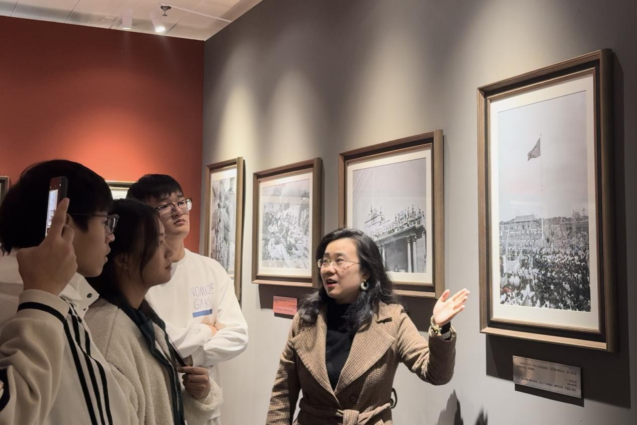 在参观过程中,学生们积极互动,与王楠老师深入讨论每张照片的构图、光线、色彩等摄影技巧,以及照片所传达的情感和信息。这种互动学习的方式,让学生们在感受历史的同时,也对新闻摄影有了更深的理解和认识。