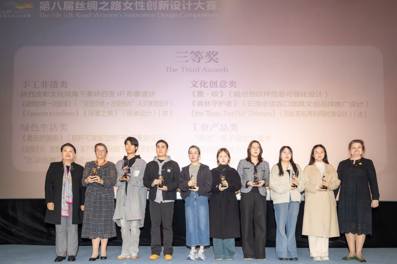 2024年11月4日,备受瞩目的第八届丝绸之路女性创新设计大赛颁奖典礼在西安市西影大厦星光厅隆重举行。我院产学研副院长邵路教授、竞赛负责人李姝琦副教授以及获奖团队代表受邀出席了这一盛会。本届大赛由陕西省妇联、陕西省生态环境厅、陕西省文化和旅游厅、陕西省社会组织国际交流促进会联合主办,以“设计让生活更美好”为主题,旨在汇聚全球女性的创新智慧,推动设计领域的交流与合作。