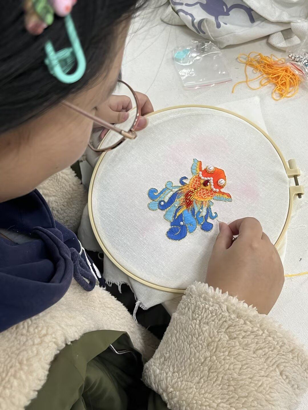 学生绣制过程