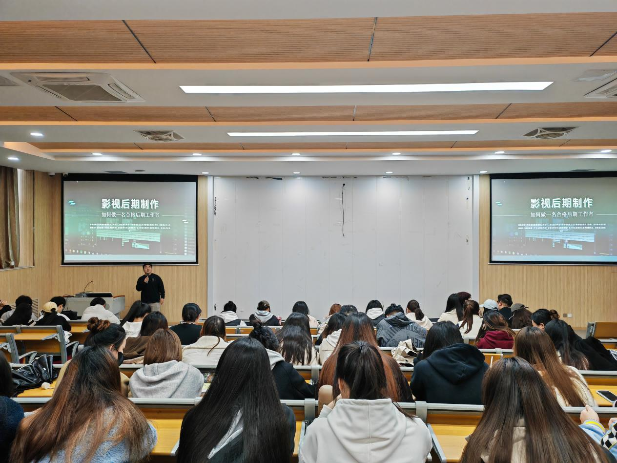 陕西光韵诗影视文化传播有限公司的两位资深专家——樊翔与赵锦杰,以及西安月牙影视文化传播有限公司的创始人王蒲军受邀成为此次培训的核心讲师。赵锦杰以其深厚的策划功底和敏锐的市场洞察力,分享了前期策划对于影视作品成功的重要性,并详细讲解了策划过程中的关键环节;樊翔以其丰富的中期拍摄经验和对光影的独特见解,为同学们深入剖析了拍摄过程中的关键技巧与注意事项;王蒲军作为影视后期的专家,以其精湛的技术和独到的创意,为同学们揭示了影视后期制作的奥秘,让他们对影视制作的全过程有了更全面的认识。