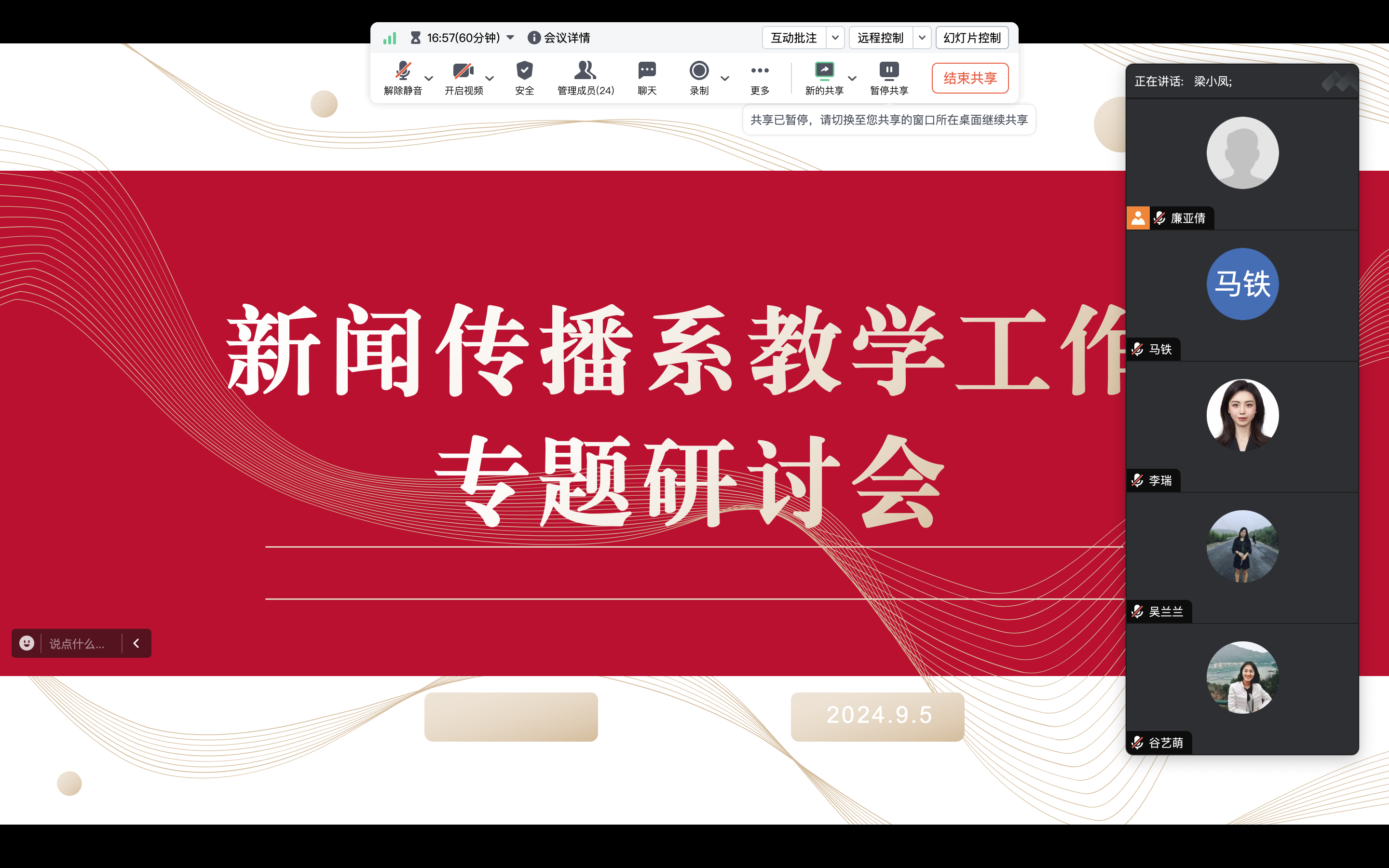 为了进一步提升网络与新媒体专业教师的课程思政能力,加强专业课程与思想政治教育的深度融合,近日网络与新媒体教研室在线上举办了“提升课程思政能力”的教研会,此次会议旨在通过深入探讨和交流,为教师们提供一个学习和提升的平台。